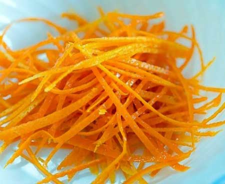 Was de sinaasappel en snijd de schil eraf met een dunschiller. Snijd deze vervolgens in dunnere reepjes. Pers de sinaasappel uit. Vul een fles met de azijn, voeg het gezeefde sinaasappelsap toe en stop de reepjes schil erbij. Enkele dagen laten staan.